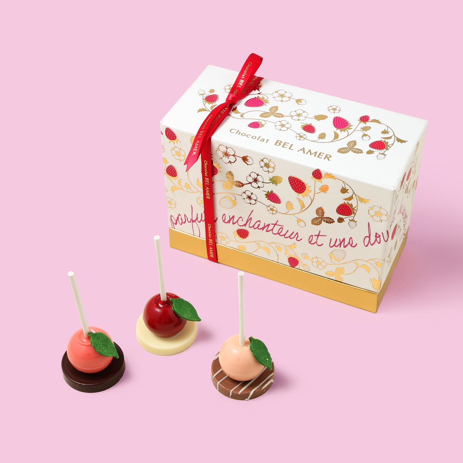 苺ポップは、「紅ほっぺ」「とちあいか」「あまおう」のジュレを可愛らしい棒付きショコラに閉じ込めたチョコレート。見た目にも可愛く、色合いもカラフルで、もらった相手がハッピーになれそうなプレゼントです。