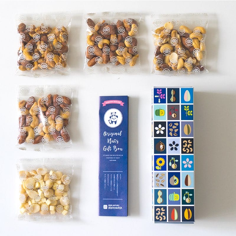 小島屋のナッツギフトには、燻製スモークやキャラメリゼミックスなど5種類のナッツが入っています。紅茶に添えてプレゼントすれば、これだけで素敵なティータイムが過ごせそう。